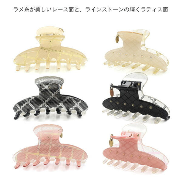ヘアクリップ ファブリックレース 片面ずつ表情の異なるおしゃれなヘアクリップ。
