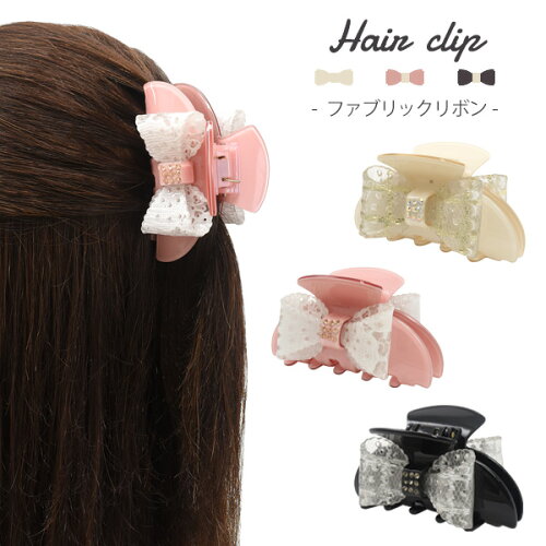 送料無料【 ヘアクリップ ファブリックリボン 】 大人 立体 髪飾り 髪留め ヘアアクセサリー レディース 女性 ロング 上品 かわいい おしゃれ ビジネス フォーマル デイリー オフィス ヘアアレンジ シンプル 大人っぽい ラインストーン キラキラ ラティス レース柄