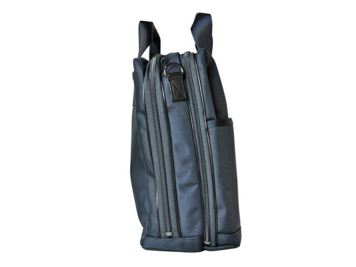 サイズ:W37 H28 D11cm 重量:約960g(ストラップ含む) 素材:表:Airtec1680ナイロン中空糸オックス(ウレタンコーティング)、裏:ナイロンオックス(ウレタンコーティング)、付属:牛ステア(コンビネーション鞣し) 内容:フロントオープンポケット3(W11 H15cm)、背面スナップポケット1(W36 H23cm)、メインポケット2(中にベルクロポケット1,オープンポケット2,ペン入れ2,ファスナーポケット1,デジタルデバイス用ポケット2) ショルダーストラップの長さ:約78-132cm ショルダーストラップの幅:5cm メーカー品番:NO.620-08285 日本製 カラー:ネイビー ※モデルの身長は175cmです。